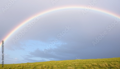 © ole, Naklejka premium Vibrant Rainbow Over Rolling Green Hills