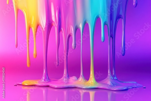© popuo design, Naklejka premium Vibrant Rainbow Paint Dripping Abstract Art: Colorful Fluid Dynamics and Glossy Texture