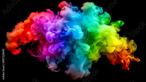 © Vitaliy, Obraz premium Vibrant Rainbow Smoke on Black Background