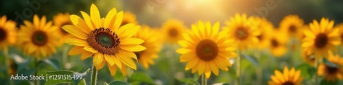 © Duangjai, Fototapeta premium Vibrant rainbow sunflowers, close-up meadow view, colorful, summer, meadow