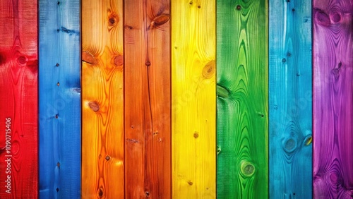 © Autun, Fototapeta premium Vibrant Rainbow Wooden Planks Background for LGBT Pride Celebration - Colorful Wall Texture with Copy Space for Design Projects