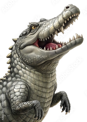 © Rostislav Bouda, Obraz premium Vibrant Realistic Crocodile Illustration Exaggerated Features Dramatic Expression Sharp Teeth Detailed Scales Dynamic Pose Animal Art