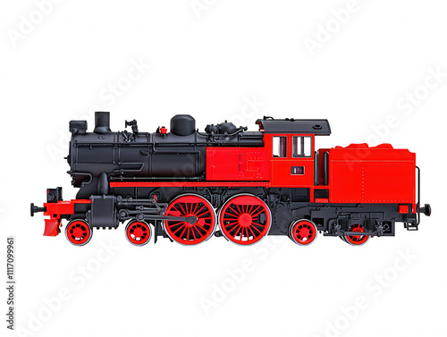 Fototapeta premium Vibrant Red and Black Classic Model Train #13 Locomotive Carriage Set Against...