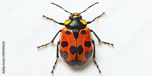 © Lala, Fototapeta premium Vibrant red and black Firebug insect Pyrrhocoris apterus centered against a stark white background showcasing intricate detailing and textures