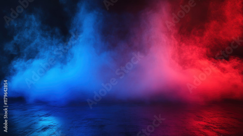 Obraz premium Vibrant red and blue smoke creates dramatic atmosphere