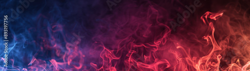 Obraz premium Vibrant red and blue smoke swirls together, creating a visually striking and...