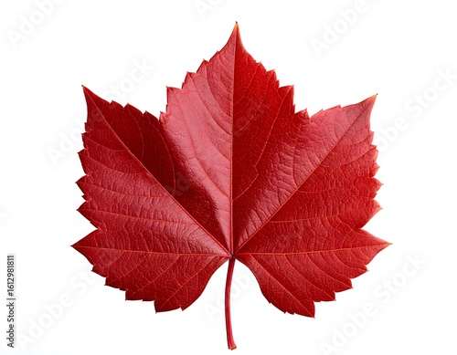 Naklejka premium Vibrant red autumn leaf, detailed veins