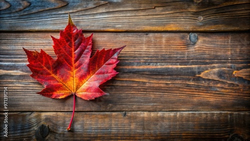 Obraz premium Vibrant red autumn leaf on rustic wooden table