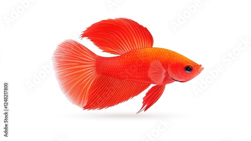 © Ginama, Fototapeta premium Vibrant red betta fish swimming gracefully against a clean white background, showcasing its fins