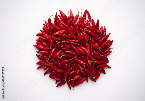 © Generative AI, Naklejka premium Vibrant Red Chili Peppers Piled Together in a Decorative Arrangement on White Background : Generative AI