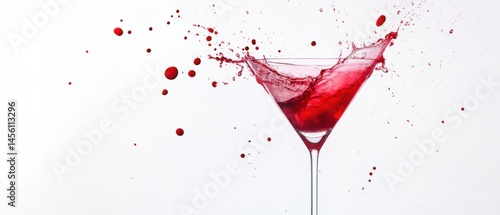 © Fernando, Fototapeta premium Vibrant red cocktail splashing dramatically in a martini glass against a clean white background, showcasing celebration, refreshment, and dynamic movement