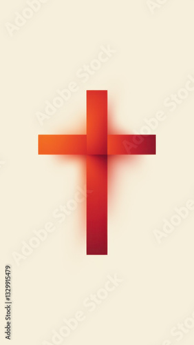 © Tameem, Obraz premium Vibrant red cross on light background with pixelated texture.