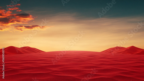 © Athiphat, Obraz premium Vibrant red dunes create stunning landscape under dramatic sky at sunset. natural beauty evokes sense of tranquility and wonder in this serene environment