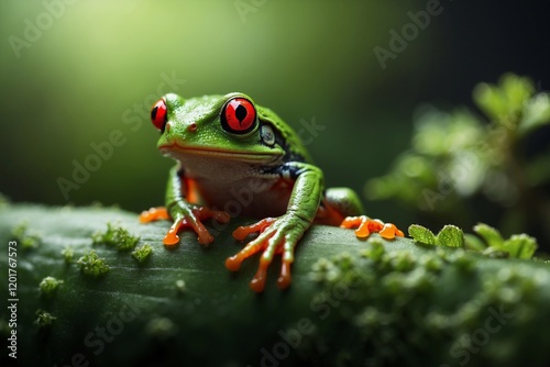 © Octopus16, Fototapeta premium Vibrant Red-Eyed Tree Frog in Lush Rainforest