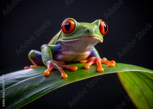 © Danicha, Fototapeta premium Vibrant Red-Eyed Tree Frog Minimalist Photography - Tropical Rainforest Amphibian