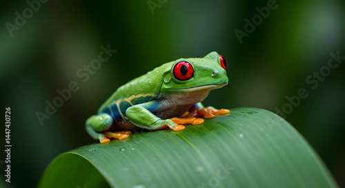 © verdian, Naklejka premium Vibrant Red-Eyed Tree Frog on Lush Green Leaf