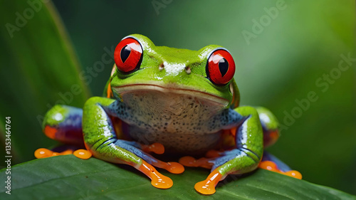 © Tamjid, Fototapeta premium Vibrant Red-Eyed Tree Frog on Lush Leaf