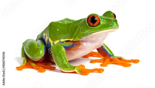 © yuli, Obraz premium Vibrant Red-Eyed Tree Frog with Bright Orange Feet on White Background.