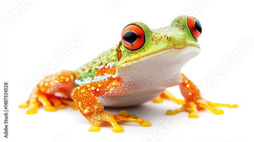 © Jeloart, Obraz premium Vibrant Red-Eyed Tree Frog with Intricate Markings Isolated on White Background