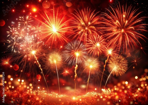 © DigitalArt Max, Naklejka premium Vibrant red fireworks illuminate a sparkling 2024 against a dark holiday background, creating a festive and celebratory atmosphere perfect for New Year's Eve decorations.