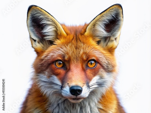 © Man888, Fototapeta premium Vibrant red fox with sharp ears and piercing eyes, isolated on a transparent background, perfect for graphic design, advertising, and wildlife-themed projects.