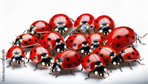 © netsay, Fototapeta premium Vibrant Red Ladybugs Against a White Backdrop Striking Closeup Showcasing Intricate Black Spots and Lively Texture, Perfect for Digital Art, Home Decor, or Design Inspiration