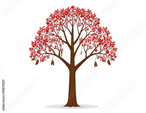 Obraz premium Vibrant red leaf tree illustration isolated on white background for design