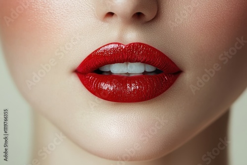 © WhimsyCreative, Fototapeta premium Vibrant Red Lips Close-Up on Soft Smooth Skin