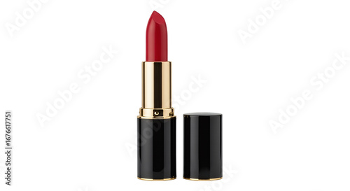 © Sapta Art, Obraz premium Vibrant Red Lipstick Beauty Product on Black Background