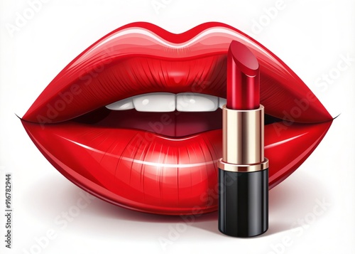 Obraz premium Vibrant red lipstick icon in sleek vector illustration, perfect for beauty,...