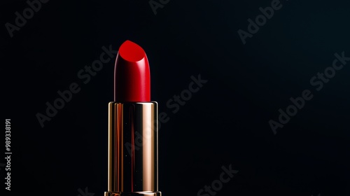 Obraz premium Vibrant red lipstick tube on a dark background, showcasing elegance and beauty.