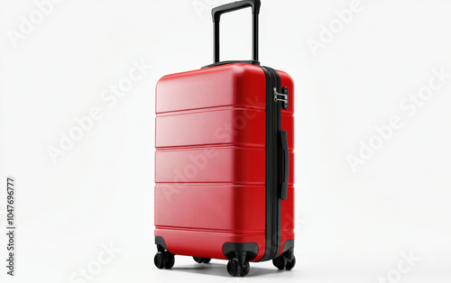 © Keopaserth, Fototapeta premium vibrant red luggage piece with sleek design, featuring sturdy handle and smooth wheels for easy mobility. Perfect for travel enthusiasts seeking style and functionality