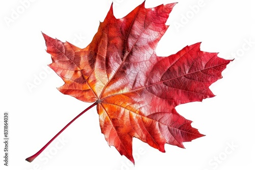 Fototapeta premium Vibrant red maple leaf, isolated on white background,
