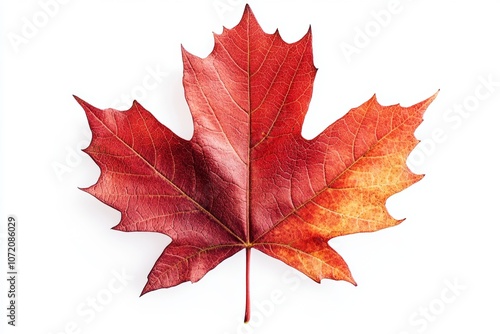 © Autchara, Obraz premium Vibrant Red Maple Leaf on White Background