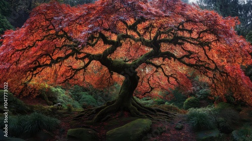 Naklejka premium Vibrant Red Maple Tree in Autumn Foliage