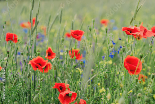 Obraz premium Vibrant Red Poppies Blooming in a Lush Green Field