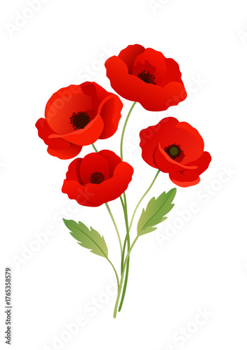 Fototapeta premium Vibrant Red Poppies Isolated on White Background