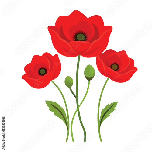 © Mahmuda, Obraz premium Vibrant red poppy flowers in full bloom vector illustration on a white background
