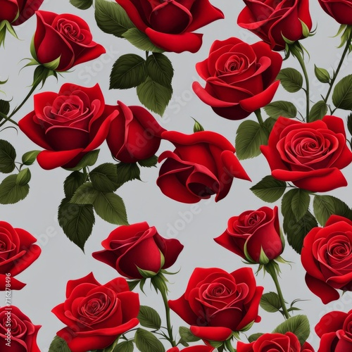 © shaadjutt36, Fototapeta premium Vibrant Red Roses Bunch Against Blurred Grey Background
