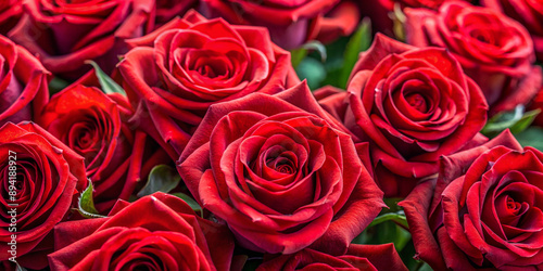 © Wasi, Obraz premium Vibrant Red Roses Closeup