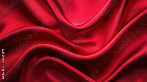 © Flowaiart, Obraz premium Vibrant Red Silk Fabric Drapery with Smooth Flowing Texture in Close-up Detail