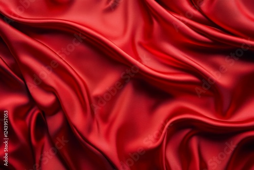 © mehaniq41, Fototapeta premium Vibrant red silk fabric with flowing texture. Neural network AI generated
