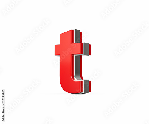 © Hammad, Obraz premium Vibrant Red Small Letter t Gleams With Its Sleek Metallic Design With Sharp Edges 3D Illustration