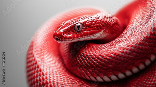 © kaiserseeing, Fototapeta premium Vibrant Red Snake Curled in Artistic Pose