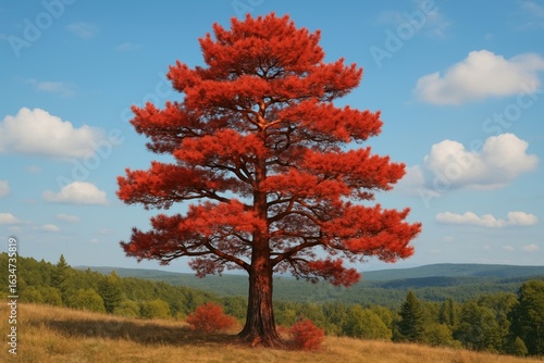 Fototapeta premium Vibrant red tree in landscape