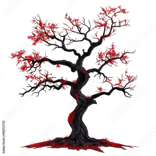© Marsor, Fototapeta premium Vibrant red tree with intricate branches transparent background