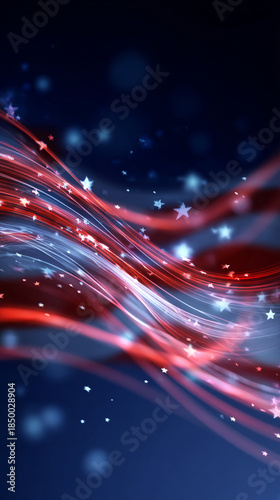 © Jhati, Fototapeta premium Vibrant Red White and Blue Starry Night Background with Glowing Lines and Sparkling Stars