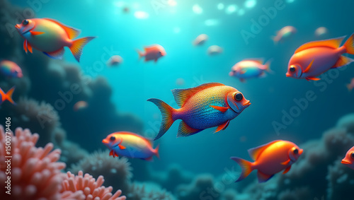 © Ikhbal, Naklejka premium Vibrant Reef Fish A Stunning Underwater Scene of Colorful Coral Reef Inhabitants