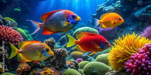 Fototapeta premium Vibrant Reef Inhabitants A Colorful Underwater Scene Showcasing Exquisite...