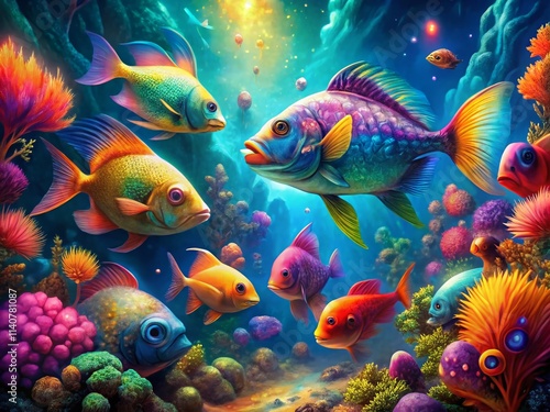 Fototapeta premium Vibrant Reef: Surreal Colorful Fish Photography, Underwater Fantasy, Aquatic...